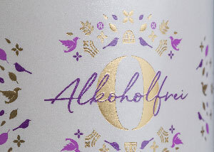 Perlmutteffekt und die Prägung aller Gestaltungselemente aus Heißgold lassen dieses Etikett zu einem feinsensiblen Nassleimetikett werden. Die Nanostruktur mit deren Prägung bleibt auch nach der Etikettierung gut erhalten.