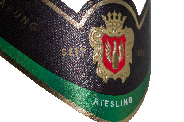 Bei diesem Etikett wurde eine gerasterte Papieroberfläche durch Lackauftrag simuliert. Das Zusammenspiel zwischen mattem und glänzenden Lack auf der Papieroberfläche ergibt eine besondere haptische und optische Struktur. Ein Etikett, das in seiner technischen Umsetzung den Möglichkeiten der Haftetiketten in nichts nachsteht, da der Effekt auch nach der Etikettierung erhalten bleibt.