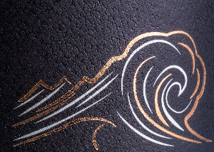 Diese Etikettenumsetzung erzielt eine hohe plakative Wirkung durch spannende Farbkontraste mit einem tiefen Schwarz, leuchtendem Grün und Kupfermetalleffekt. Ergänzt wird die Gestaltung durch eine lebendige Oberfläche in der Papierstruktur.