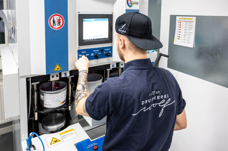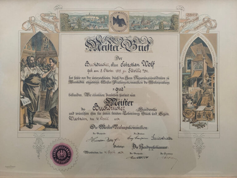 Dezember 1969 / Januar 1970:Die Druckerei zieht von der Rheingauer Straße in die Sonnenbergstraße um. Der Betrieb ist einer der ersten vollklimatisierten Druckereien in Deutschland. Schon damals war das Bestreben, durch konstantes Raumklima, eine qualitativ hochwertige Fertigung zu garantieren.