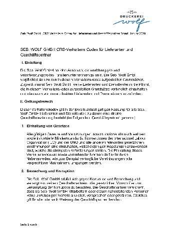 •Zu Seb. Wolf gehört nicht nur eine moderne Fertigung mit optimierten und gesicherten Prozessen mit einer dynamischen Organisation rund um ein kreatives Produkt, sondern auch die Verantwortung gegenüber unseren Kunden, Mitarbeitern und Partnern.